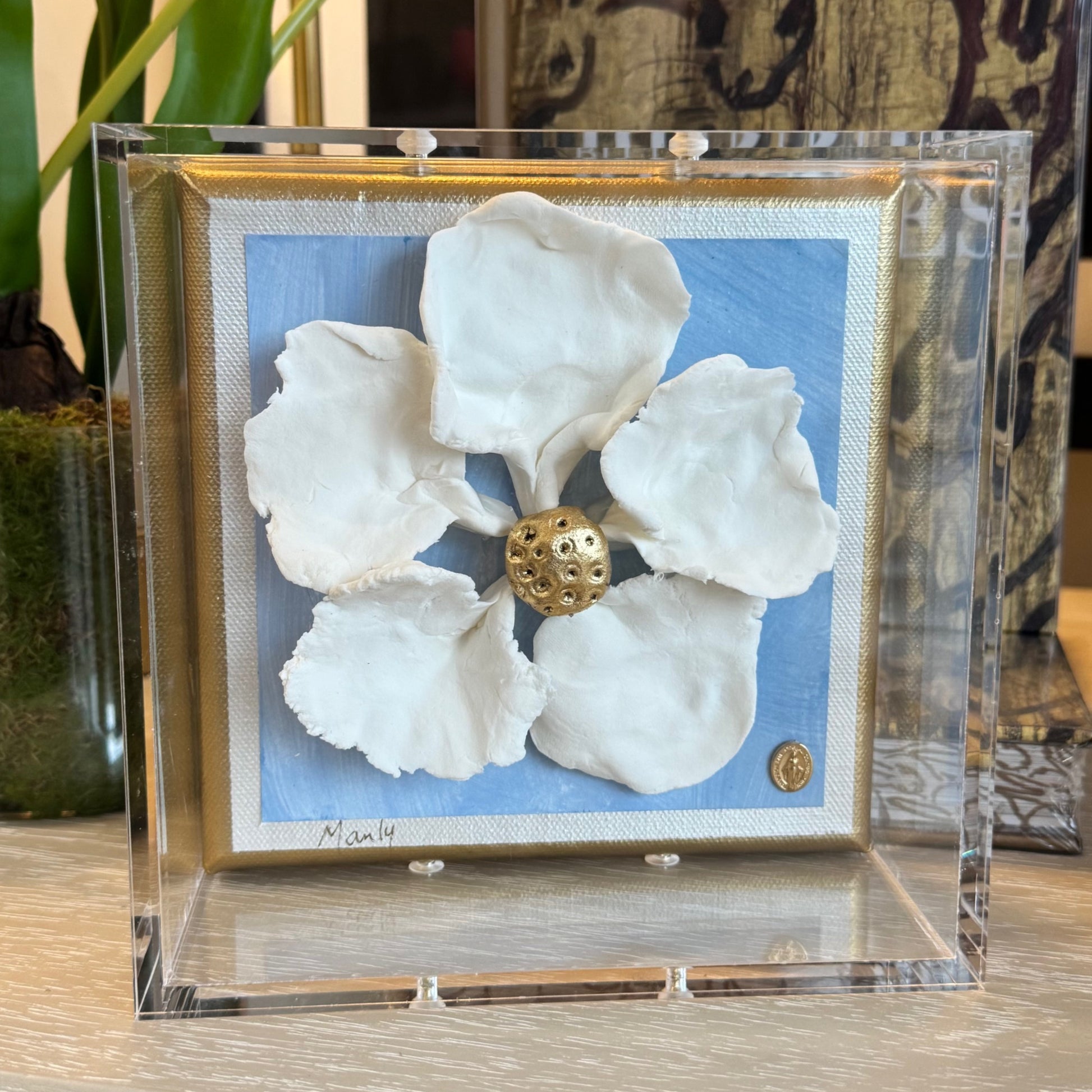 Mary Magnolia Blue 6x6 Shadowbox - each flower will vary slightly, handmade item