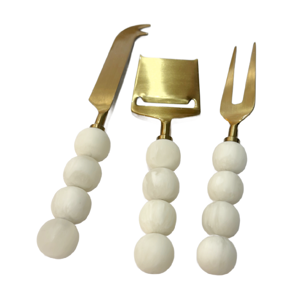 A delightful addition to your serveware collection, featuring a vibrant trio of utensils that are as functional as they are visually appealing. This set includes a cheese plane, flat knife, and pronged fork, all adorned with colorful bubble handles that embody the playful spirit of the Sorbet name. Each piece is crafted from resin, showcasing a unique swirled color pattern that adds a touch of artistry to any cheese or charcuterie board. Perfect for gifting on any occasion, this BPA-free set is designed for hand washing, ensuring longevity and style.